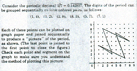 For the next ten minutes, Mr Ode, using a TI-81 calculator with an overhead projector display, leads a highly active Socratic lesson that develops a recursive technique for generating any number of decimal places. After three iterations the class has a decimal expansion of .03225806451612903225806 and has identified the repeating segment for this periodic decimal.